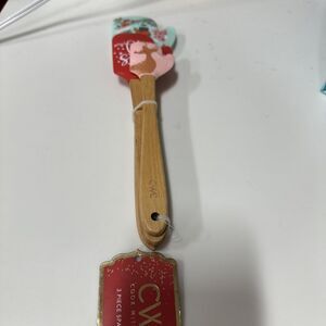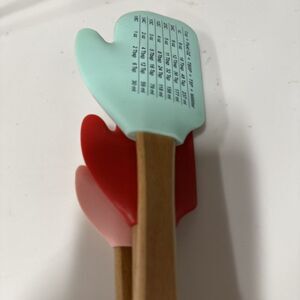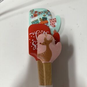 This is a set of 3 Christmas-themed spatulas in a mitten shape. The spatulas are made of silicone with wooden handles. They come in a multicolor design and are suitable for use in the kitchen.