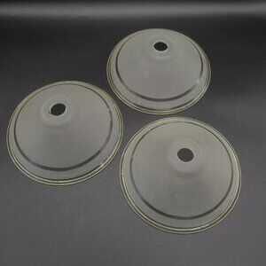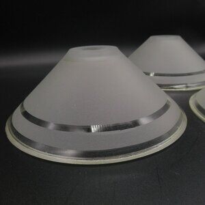 Set Of 3 Frosted Glass Light Lamp Shades With Clear Stripes Art Deco 6.75"