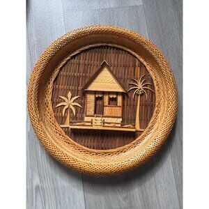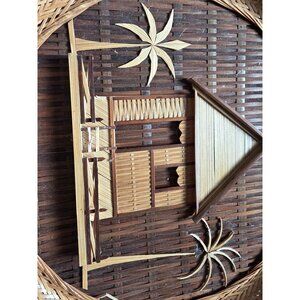 Set Of 3 Handcrafted Bamboo & Rattan Wall Decor Tropical Hut & Palm Tree Design