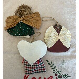 Set Of 3 Handmade Angel Christmas Ornaments Rustic Wood Fabric Straw Holiday Decor