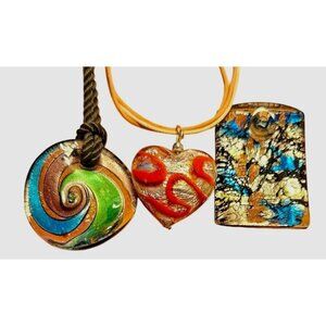 Set Of 3 Handmade Art Glass Necklaces & Pendants