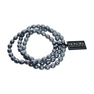 This elegant set of three Honora Collection stretch bracelets features lustrous gray freshwater pearls. Each bracelet offers a timeless design that easily complements a variety of outfits, from professional attire to evening wear. The stretch design ensures a comfortable fit for different wrist sizes, making it a versatile addition to any jewelry collection.