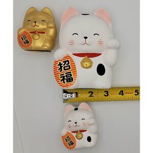 Set Of 3 Maneki Neko Lucky Cat Coin Banks