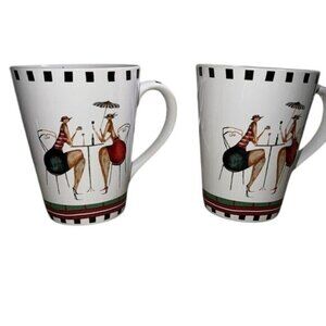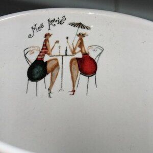 These ceramic mugs feature a sophisticated design, perfect for coffee enthusiasts or collectors. The "Mes Amies" theme adds a touch of elegance to any kitchen.
