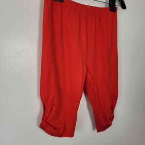 Three brand new biker shorts, all size large. Red, purple and white. Soft stretchy material with a fun loop detail on the bottom hems. Ideal for wearing under skirts and dresses or tunics. They all measure approximately 23 inches long 12 inseam (11 rise) 28 waist. Very stretchy.