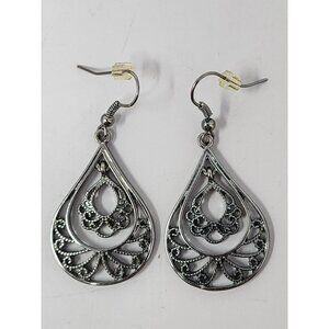Silver teardrop earrings top to bottom = 3 inches