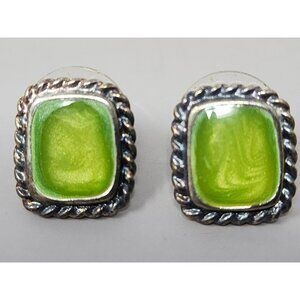 • Green stud earrings with twist frame