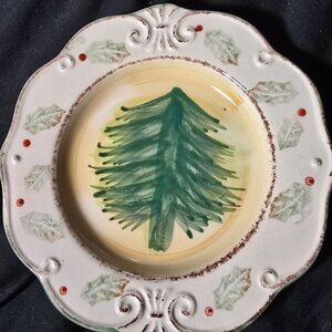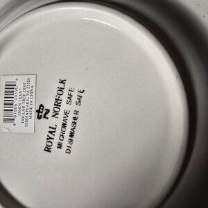 A delightful trio of Royal Norfolk plates adorned with charming Christmas motifs. These stoneware pieces, crafted in China, offer a vintage aesthetic with their hand-painted designs. A wonderful addition to your holiday decor.