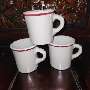 Set Of 3 Shenango China White Coffee Mugs With Red Rim Diner Style