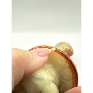 The largest mushroom has a chip on the indoor side and one small scratch seat photos for condition.