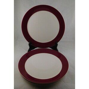 Set Of 3 Syracuse China Syralite 10 3/4" Dark Red Rim Ceramic Dinner Plates