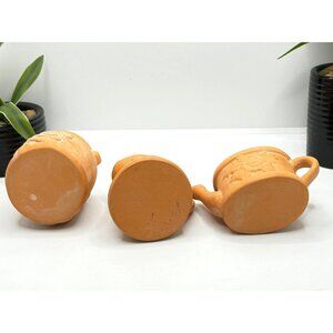 This charming set includes three terracotta miniatures with floral embossing, including a planter and watering can. They add a rustic touch to home decor.