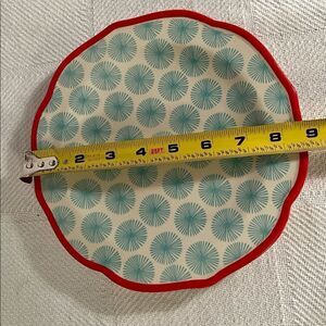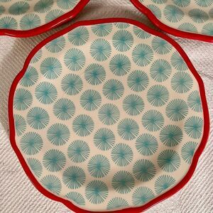 Set Of 3 The Pioneer Woman Happiness Turquoise Red Scallop Rim Salad Plate 8.5”.