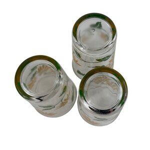 Set Of 3 Vintage Floral Drinking Glasses Yellow Daisy & Butterfly Design