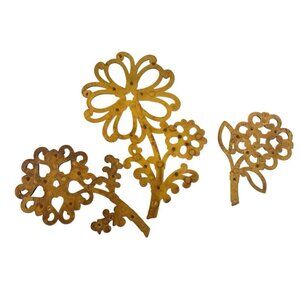 Set Of 3 Vintage Homco Flower Wall MCM Decor, 7", 6" & 4.5" Brown Gold Plastic