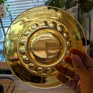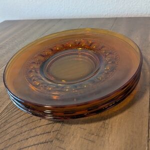 Set Of 3 Vintage Indiana Glass Plates Thumbprint Amber Kings Crown 10" Snack. Condition is Used. Shipped with USPS Ground Advantage.