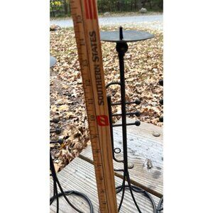 Set Of 3 Vintage Trumpet-Shaped Black Metal Pilar Candle Holders