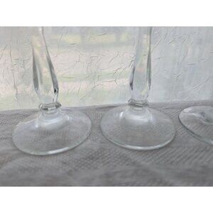 No noticeable flaws or damage. Height = 7 inches. One glass slightly shorter.