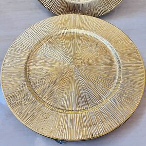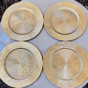Set Of 4 American Atelier Charger Plate Large 13” Gold Starburst Decorative