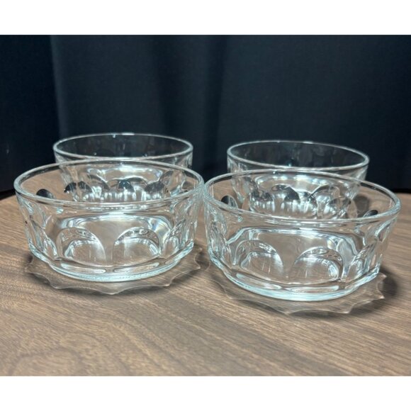 Set Of 4 Arcoroc France Dimpled Glass Bowls 4" Diameter Fruit/Dessert Stackable