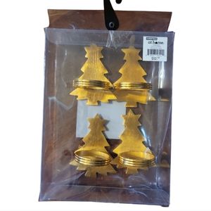 Set Of 4 At Home Napkin Ring Holders Gold/Brass Colored Christmas Tree Heavy