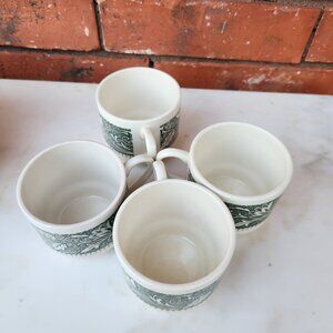 Set Of 4 Avon Retro Green Vine Pattern Ceramic Coffee/Teacups