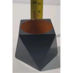 This product comprises a set of four black TerriSol napkin rings. Crafted from wood, these napkin rings showcase a modern design with a solid black and orange color palette, smooth finish, and irregular shape. Suitable for various occasions, they are designed for adults and teens. The set, handcrafted in India, includes four napkin rings per pack, ideal for enhancing any dining table setting with a contemporary aesthetic. Please be aware that some signs of wear and tear may be present due to the product's age and prior use.