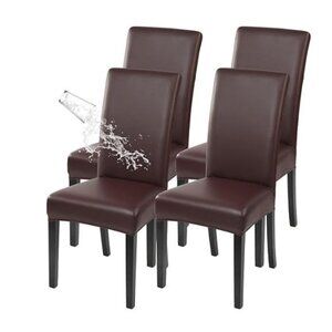 Set Of 4 Brown Faux Leather Waterproof Dining Room Chair Covers Stretch Slipcove