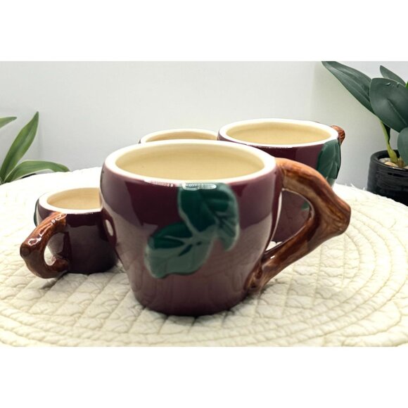 This set of four ceramic measuring cups combines functionality and design, featuring a nature-inspired leaf motif and branch handles for a unique touch.