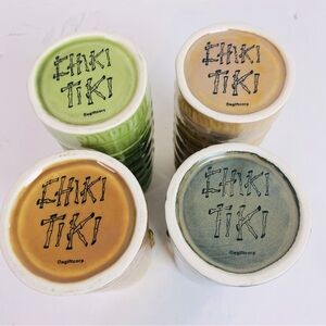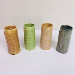 Set Of 4 Chiki Tiki Ceramic Tall Tiki Mugs 6”