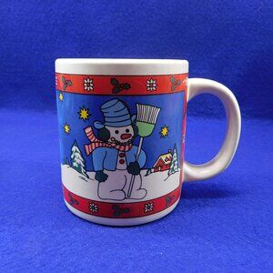 Set Of 4 Christmas Ceramic Mugs With Box 10 oz Snowman Reindeer & Bells Design