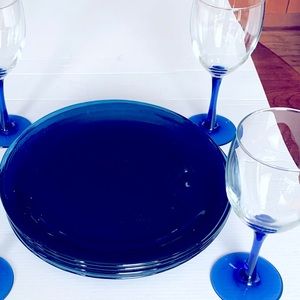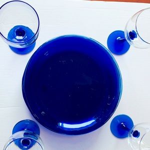 Set Of 4 Cobalt blue glass dinner plates 25 cm 10” inches Diameter plates