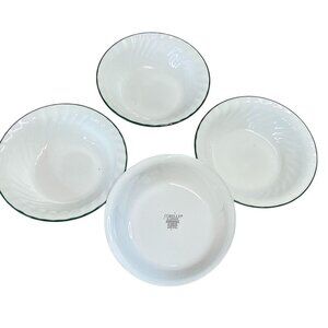 Set Of 4 Corelle White Swirl Rimmed Soup Bowls With Green Trim 6.25" Diameter Du