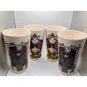 Set Of 4 Disney Nightmare Before Christmas Jack Sally Tan Plastic Drinking Cups