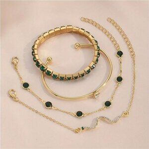 Set Of 4: Fashionable Vintage Elegant Snake-Shaped Rhinestone Bracelets