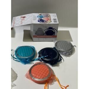 Set Of 4 Floxite Gift Folding Vanity Compact Mirror 5x Magnifying - Colored NEW. Wonderful for gift. Comes with gift bag. See photos