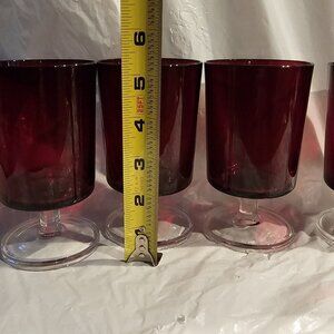 Set Of 4 France Luminarc ARCOROC RUBY RED 5" 8OZ JUICE TUMBLERS W/CLEAR STEMS
