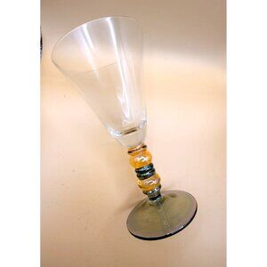 Set Of 4 Handblown Wine or Water Glasses Goblets Multicolor Beaded Stems dh900