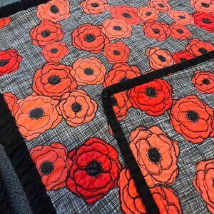 Set Of 4 Handmade Quilted Placemats With Red & Orange Poppies Floral Design