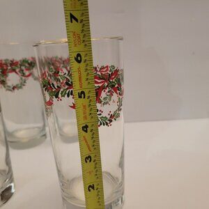 Set Of 4 Holiday Wreath Design Highball Glasses With Gold Rim 16 Oz Christmas De