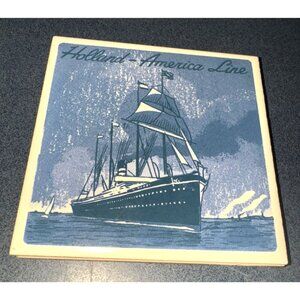 This set of four Holland America Line ceramic coasters showcases elegant ship designs in a classic blue and white color scheme. Ideal for maritime enthusiasts, these coasters add a nautical touch to your home decor. Each coaster is backed with cork to prevent slipping and protect surfaces.