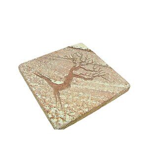 Set Of 4 Ornate Sandstone Tile Cork Back Coasters Wildlife Wooden Stand Pottery