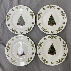 Set Of 4 Pfaltzgraff Christmas Day Salad & Dinner Plates FS Benefits Charity