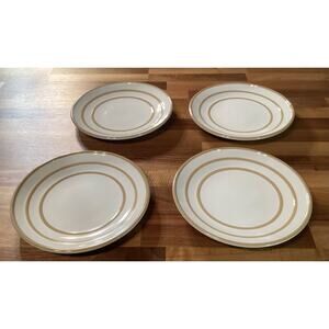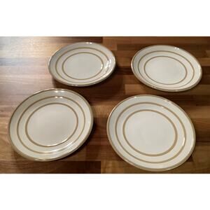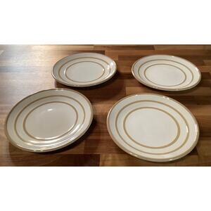 Set Of 4 Pfaltzgraff Radius Salad Plates White Tan 8 3/8"