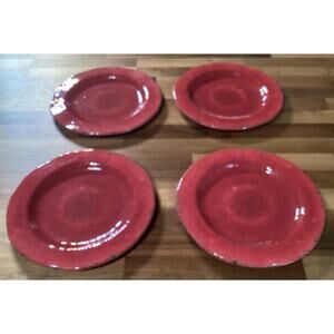 Set Of 4 Pier 1 Dark Red Carmelo Crackle Melamine 9” Salad Plates