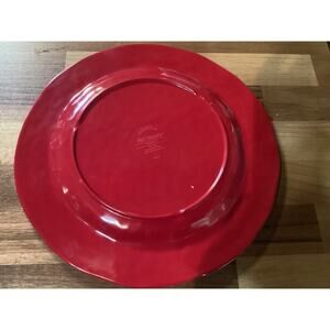 The Pier 1 Set of 4 Dark Red Carmelo Crackle Melamine 9” Salad Plates are a farmhouse-style set perfect for all occasions. Made from melamine material, these round plates feature a Carmelo pattern and a shiny finish. With a vibrant red color and a 9” diameter, they are dishwasher safe and easy to clean. Imported from China, these vintage original salad plates are ideal for teens and adults looking to add a touch of rustic charm to their dining experience. Perfect for serving salads or desserts, these plates are a stylish addition to any table setting.