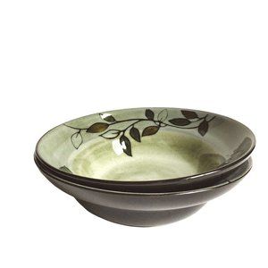 Set Of 4 Praltzgraf Rustic Leaves Soup/Salad Bowls Stoneware Green & Brown Desi