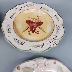 The Set of 4 Royal Norfolk Christmas Stoneware Dessert/Salad Plates features a festive Christmas Holly pattern, perfect for holiday gatherings. Made of durable stoneware, each plate has a round shape and a 8.5" diameter. The multicolor design adds a contemporary touch to your table setting, while the plates are both microwave and dishwasher safe for easy cleaning. Ideal for serving desserts or salads, this set includes everything you need to add a touch of holiday cheer to your dining experience.
