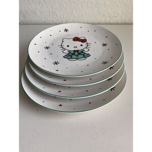 Set of 4 Sanrio Hello Kitty Ceramic Dinner Plate 10.5” Christmas Tree Dress Snowflake NEW