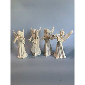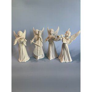 Set Of 4 Schmid Bros Japan Porcelain Musical Angel Figurines 5 3/4" Tall White C